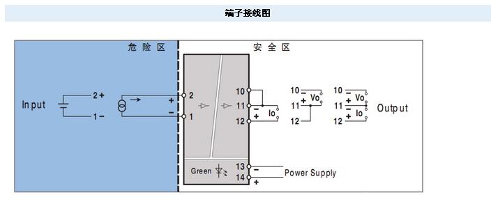 將處于現(xiàn)場危險區(qū)域的各種設(shè)備的直流信號(4~20mA,0~5V),經(jīng)過安全柵隔離、抗干擾抑制等處理后。向安全側(cè)的控制系統(tǒng)或其它智能儀表輸出直流電流或 電壓信號。