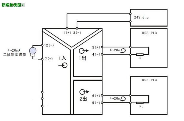 ◇ 將1路信號隔離分配為2路信號輸出,并配電24V