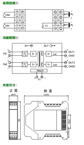 l 雙通道型:2路直流信號輸入,隔離輸出2路信號