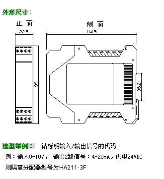 HA211一入二出信號(hào)隔離器,廣泛應(yīng)用于工業(yè)過程信號(hào)采集處理系統(tǒng)中,可配接溫度、壓力、液位、溫度、重量、流量等變送器的模擬信號(hào)如4-20mA,0-10V,0-5V等,隔離輸出信號(hào)可接入PLC、變頻器、數(shù)顯儀、采集器等設(shè)備,并對(duì)接接收設(shè)備起保護(hù)作用。