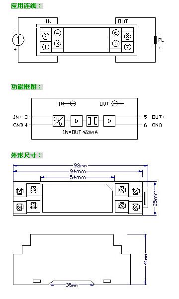 例:輸入4-20mA ;輸出4-20mA,無(wú)外供電