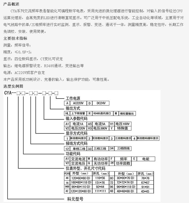 詳細(xì)信息 CYA-46-F,CYA-16-F,CYA-96B-F,CYA-42-F,CYA-80-F,CYA-72-F,CYA-96-F,CYA-48-F,CYA,交流頻率表