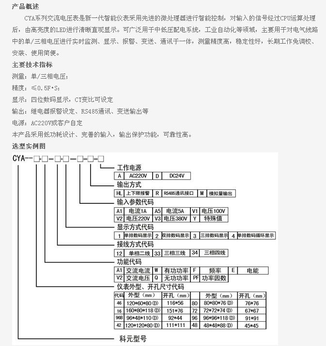 詳細(xì)信息 CYA-46-V2,CYA-16-V2,CYA-96B-V2,CYA-42-V2,CYA-80-V2,CYA-72-V2,CYA-96-V2,CYA-48-V2,CYA,交流電壓表