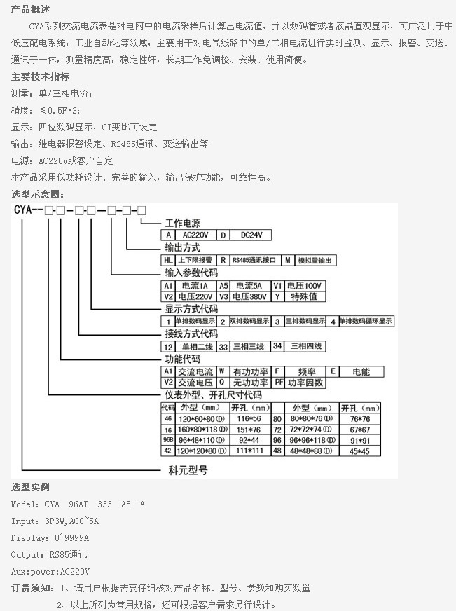詳細(xì)信息 CYA-46-A1,CYA-16-A1,CYA-96B-A1,CYA-42-A1,CYA-80-A1,CYA-72-A1,CYA-96-A1,CYA-48-A1,CYA,交流電流表
