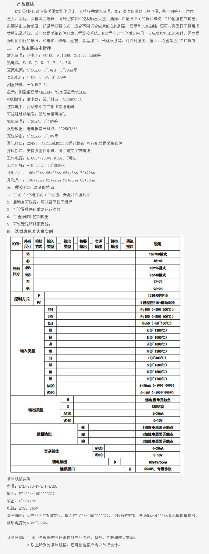 KYB-16-P,KYB-16-PZ,KYB-48-P,KYB-96B-P,KYB-96B-PZ,KYB-96B-P-TP1-A420,KYB,PID調(diào)節(jié)儀