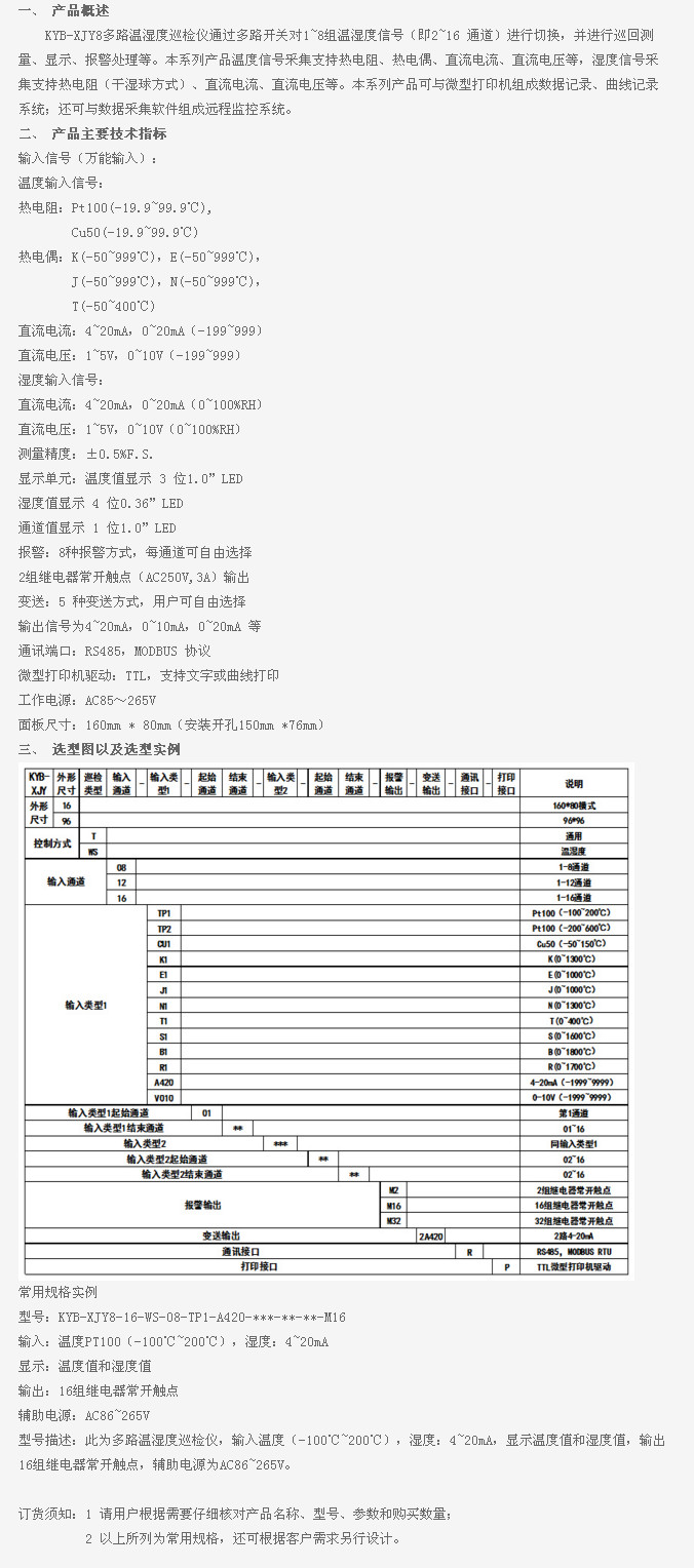 詳細(xì)信息 KYB-XJY8-16-WS-08,KYB-XJY8-16-T-12,KYB-XJY8-96-WS-16,KYB-XJY8,多路溫濕度巡檢儀