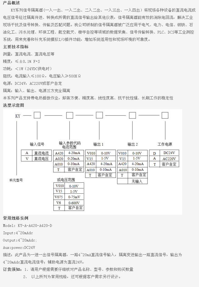 詳細(xì)信息 KY-A-A420,KY-A-A020,KY-A-A010,KY-A-T,KY-Y-V010,KY-Y-V15,KY-Y-V075,KY-Y-V6,KY-Y-T,KY-A-A420-A420-D,KY,信號(hào)隔離器