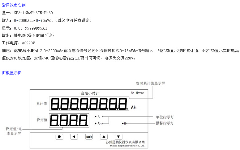 詳細(xì)信息 SPA-16DAH-A50,SPA-16DAH-A60,SPA-16DAH-A75,SPA-16DAH-Y,安培小時(shí)計(jì)