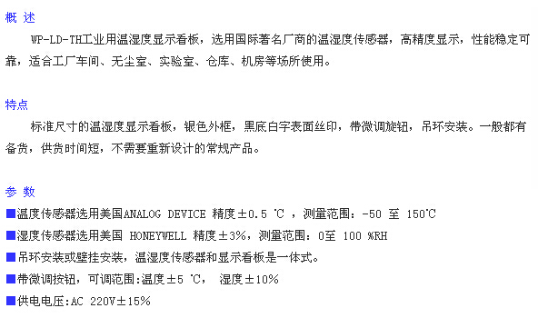 詳細(xì)信息 WP-LD-TH08,WP-LD-TH15,WP-LD-TH18,WP-LD-TH23,WP-LD-TH30,WP-LD-TH40,WP-LD-TH80,WP-LD-TH120,溫濕度看板