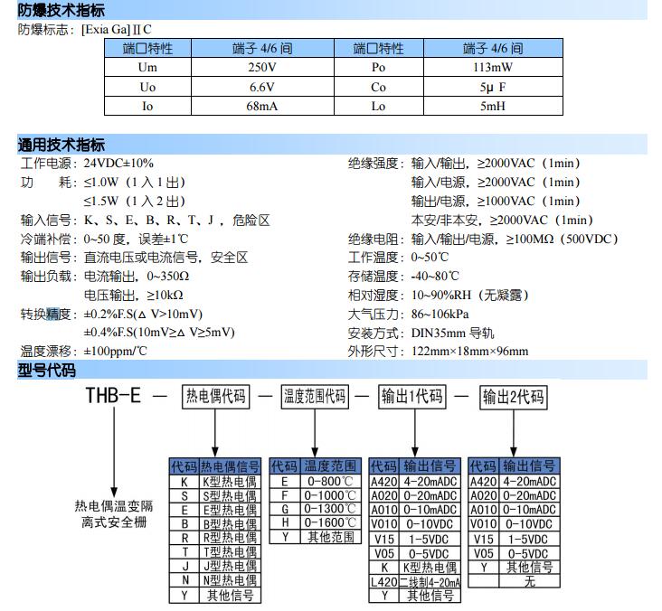 THB-E-K-E,THB-E-B-F,THB-E-K-E-A420,THB-E-S-G-2A420,THB-E熱電偶溫變安全柵