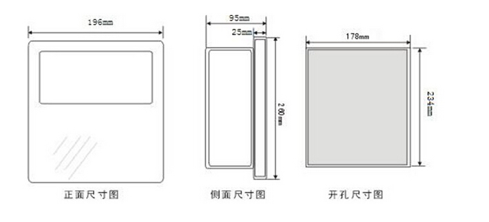 五、產(chǎn)品尺寸圖:外形尺寸:260×196×95;開孔尺寸:234×178