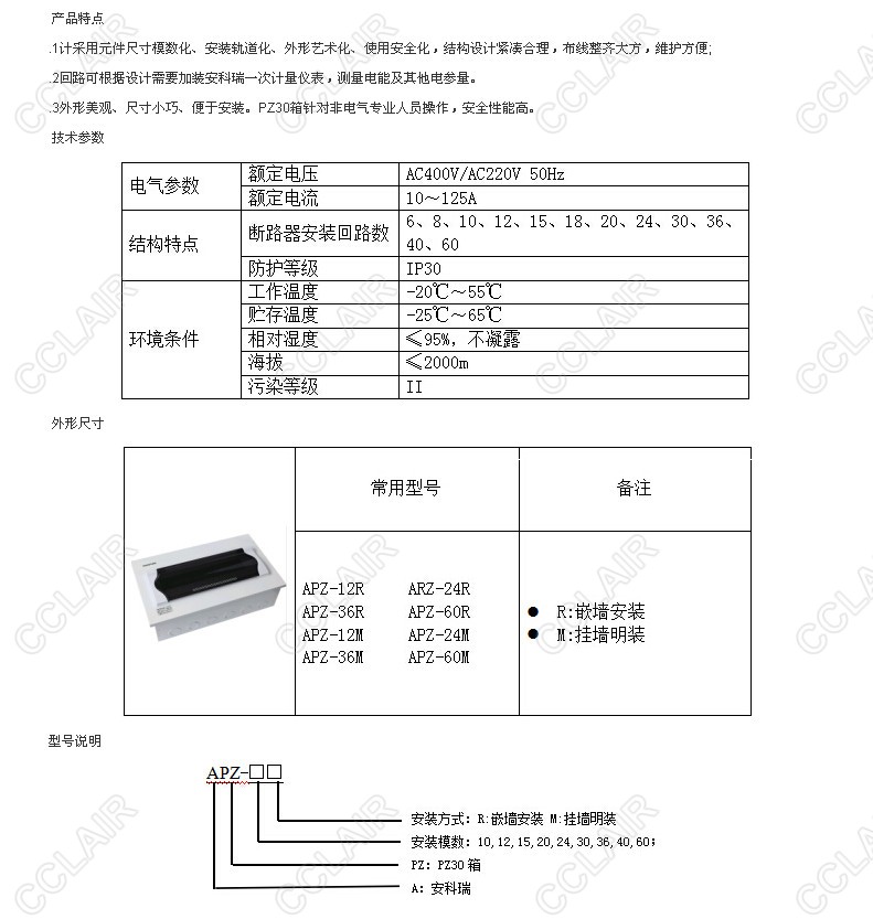 APZ-12R,APZ-24R,APZ-36R,APZ-60R,APZ-12M,APZ-24M,APZ-36M,APZ-60M,PZ30,終端組合式配電箱