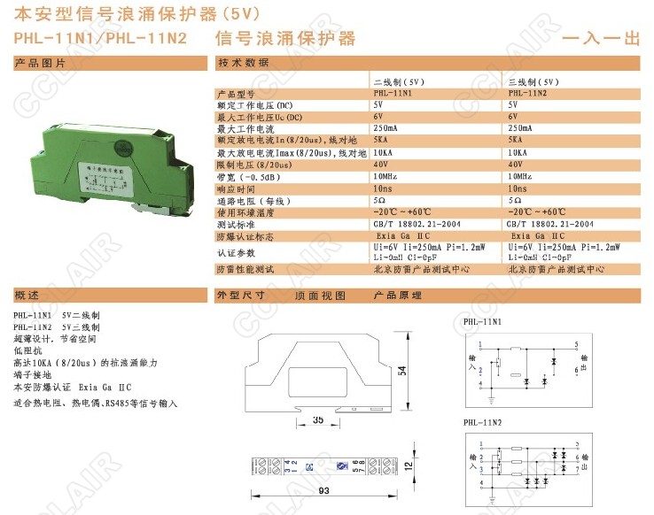 PHL-11N1,PHL-12N1本安型信號浪涌保護器