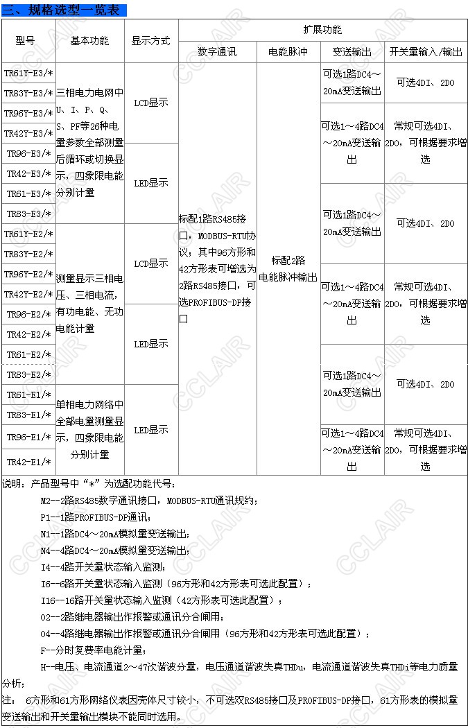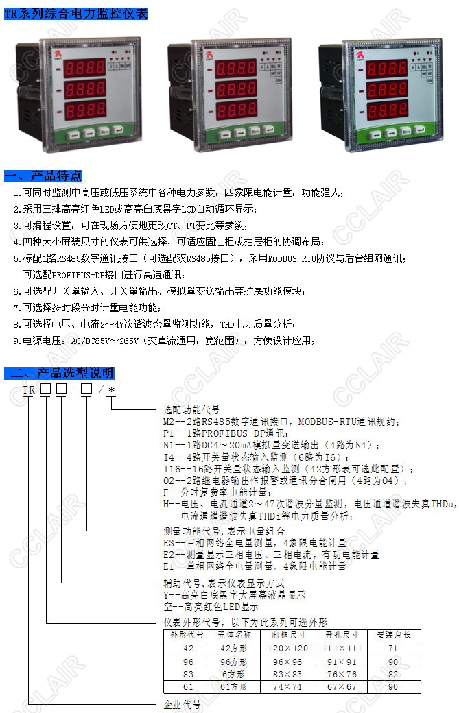 詳細信息 TR61Y-E3,TR83Y-E3,TR96Y-E3, TR綜合電力監(jiān)控儀表
