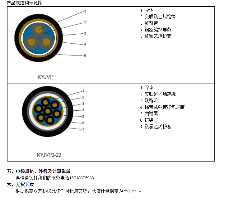 | KYJVP22 | 銅芯交聯(lián)聚乙烯絕緣聚氯乙烯護(hù)套銅絲編織屏蔽鋼帶鎧裝控制電纜 |