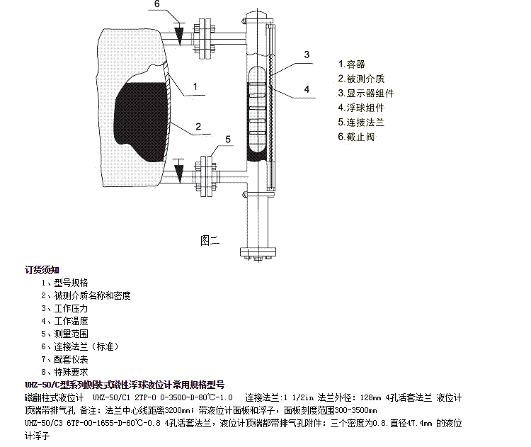 詳細(xì)信息 UHZ-50/C12TP-0O-3500-D-80℃-1.0UHZ-50/C1,UHZ-50/C2,UHZ-50/C3,側(cè)裝式磁性浮球液位計