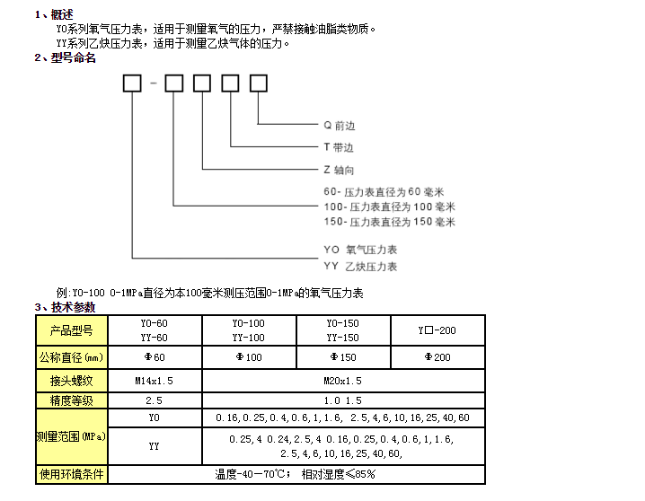 型號: YO-60,YY-60,YO-100,YO-150,YO-200,YY-150,YY-100,氧氣及乙炔壓力表
