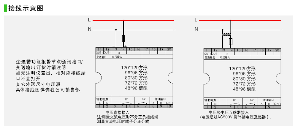智能單相電壓表概述: 96方形 外形尺寸96*96mm 開孔尺寸91*91mm