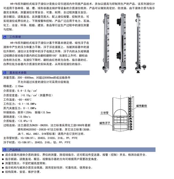 HR-FZ系列浮球式液位變送器,用于將容器內(nèi)的介質(zhì)液位變送為4~20mA二線制標(biāo)準(zhǔn)信號(hào)輸出。另外,變送器還可以提供現(xiàn)場(chǎng)指示。