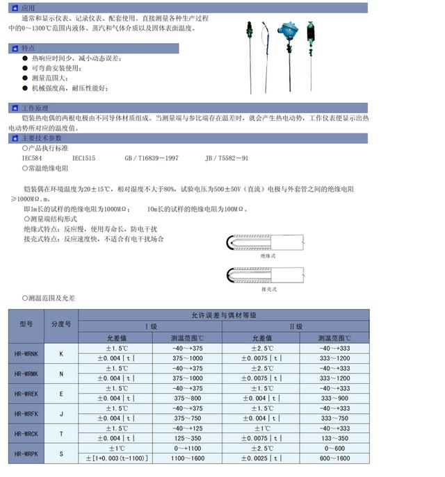 通常和顯示儀表、記錄儀表等配套使用。直接測(cè)量各種生產(chǎn)過程中的0~1300℃范圍內(nèi)液體、蒸汽和氣體介質(zhì)以及固體表面溫度。