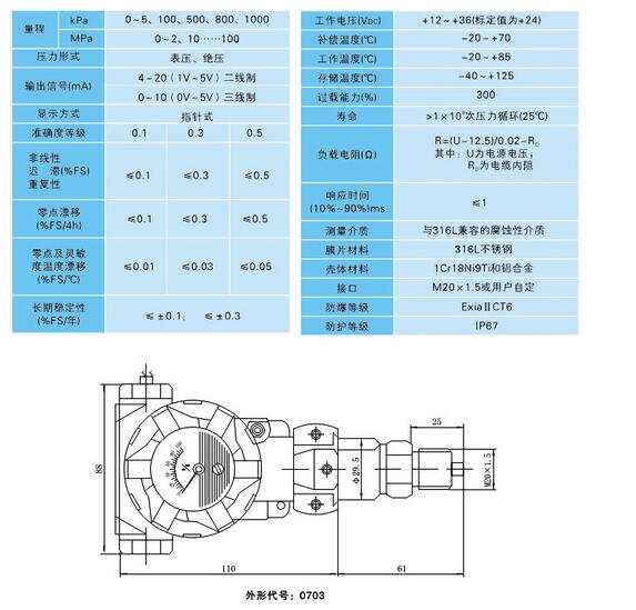 采用高穩(wěn)定性,高準(zhǔn)確度隔離金屬膜片的力敏芯片,直接用指針顯示壓力值并輸出4-20mA或0-10mA的標(biāo)準(zhǔn)信號(hào)。