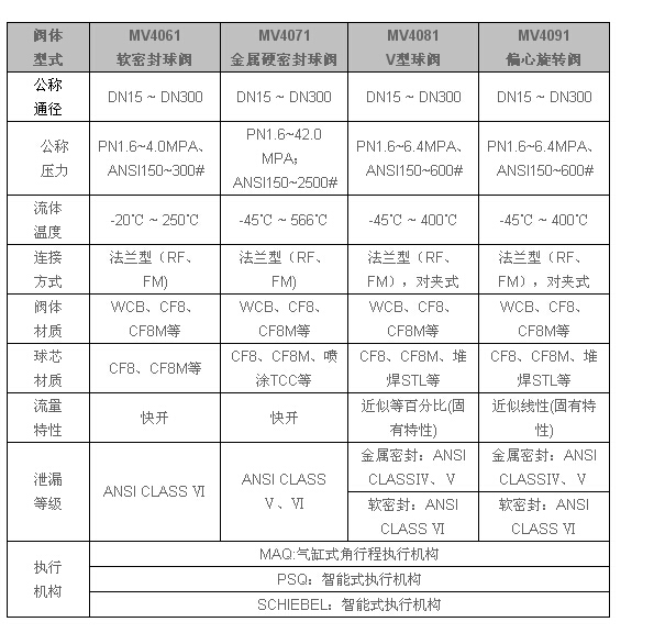 MV4061軟密球閥,MV4071金屬硬密封球閥,MV4081V型球閥,MV4091偏心旋轉(zhuǎn)閥,