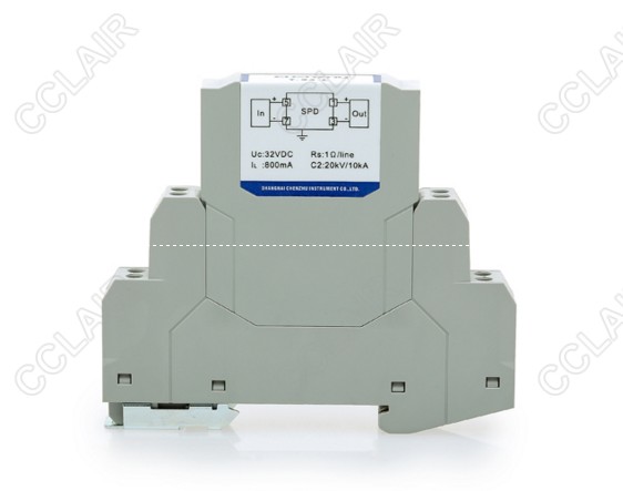 5V信號SPD,二線制,適用于線對地隔離電壓<500V信號回路,最大放電電流Imax(8/20us):20kA/線,12.5mm超薄,通過DIN35金屬導(dǎo)軌接地。