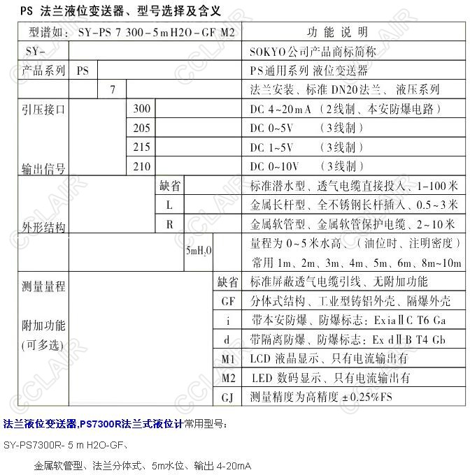 SY-PS7300R-5mH2O-GF,SY-PS7205R-5mH2O-GF,PS7300R-5mH2O-GF,PS7300R法蘭式液位計(jì)