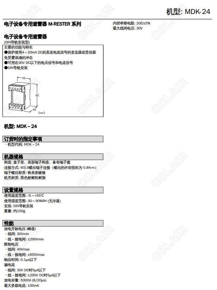 產(chǎn)品: 瀏覽次數(shù):904MDK-24,4-20mA直流、脈沖信號(hào)用 低位安裝型避雷器