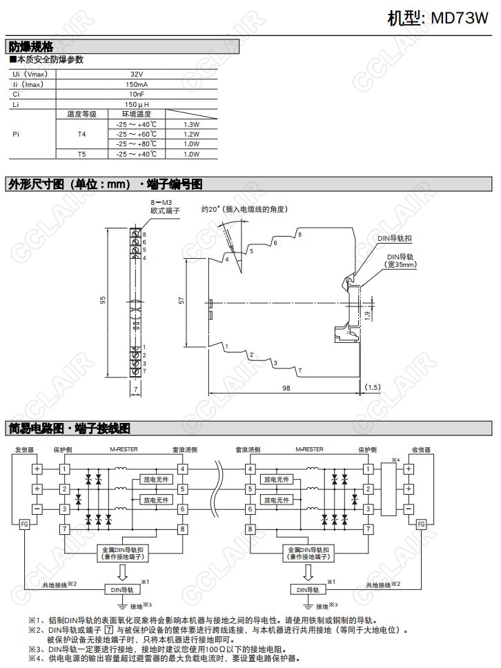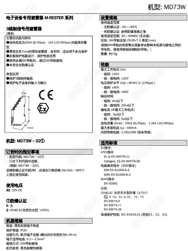 詳細信息 MD73W,MD73W-320,MD73W-322,3線制信號用避雷器 超薄型