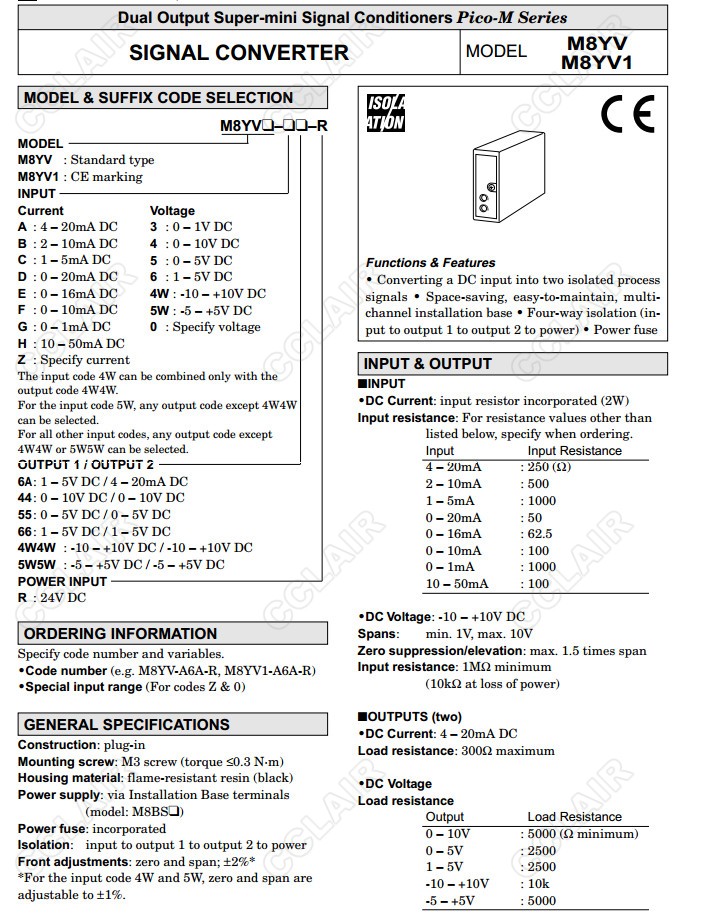 詳細信息 M8YV,M8YV-A6A-R,M8YV1-A6A-R,M8YV1-A,M8YV1-B,M8YV1-CSignal ConverterM8YV1-D,M8YV1-E,M8YV1-F,M8YV1-G,M8YV1-H,M8YV1-Z,M8YV1-3,M8YV1-4,M8YV1-5,M8YV1-6,M8YV1-4W,M8YV1-5W,M8YV1-0,