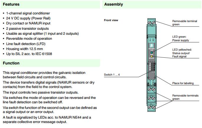 詳細信息 KCD2-SOT-1.LB,開關(guān)量輸入信號調(diào)節(jié)器