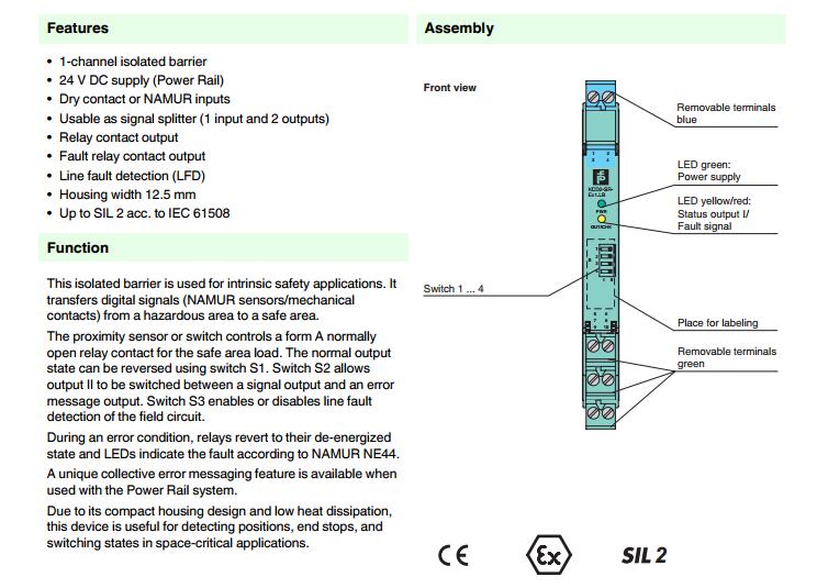 型號(hào): KCD2-SR-Ex1.LB,開關(guān)量輸入安全柵