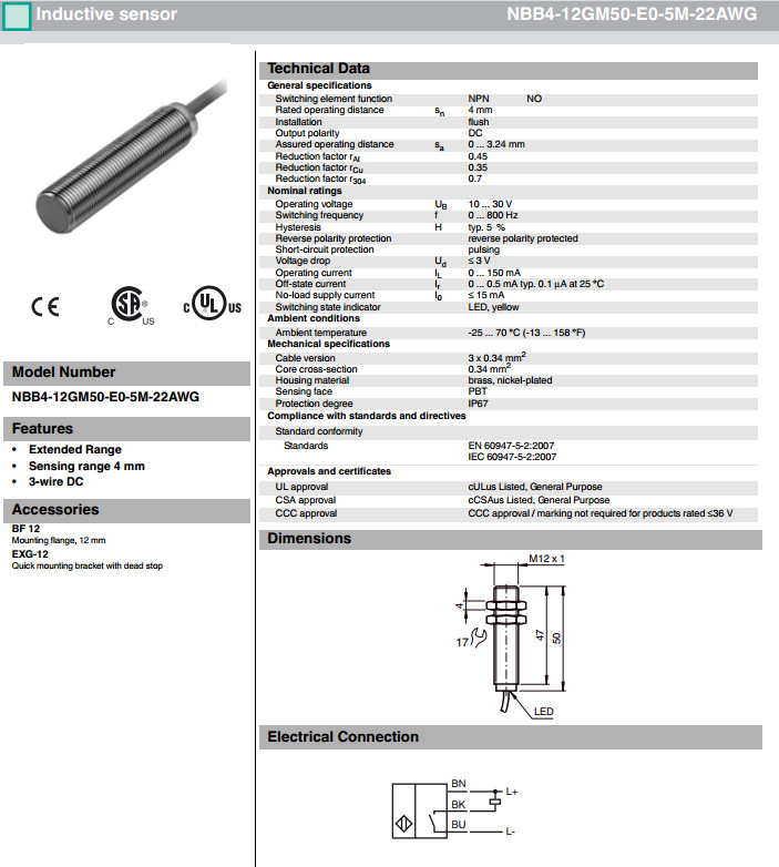 詳細信息 NBB4-12GM50-E0-5M-22AWG感應(yīng)式傳感器