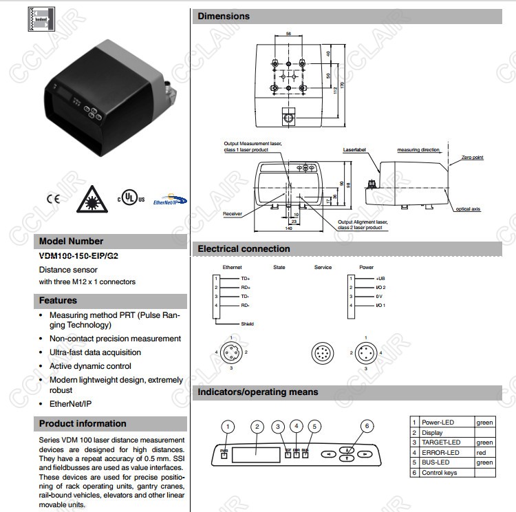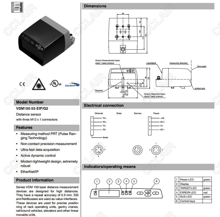 產(chǎn)品: 瀏覽次數(shù):696VDM100-150-EIP/G2,VDM100-50-EIP/G2,距離傳感器