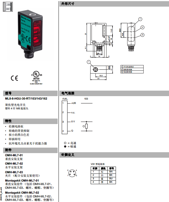 您當(dāng)前的位置:首頁(yè) » 供應(yīng)產(chǎn)品 » ML8-8-HGU-30-RT/103/143/162,漫反射型傳感器