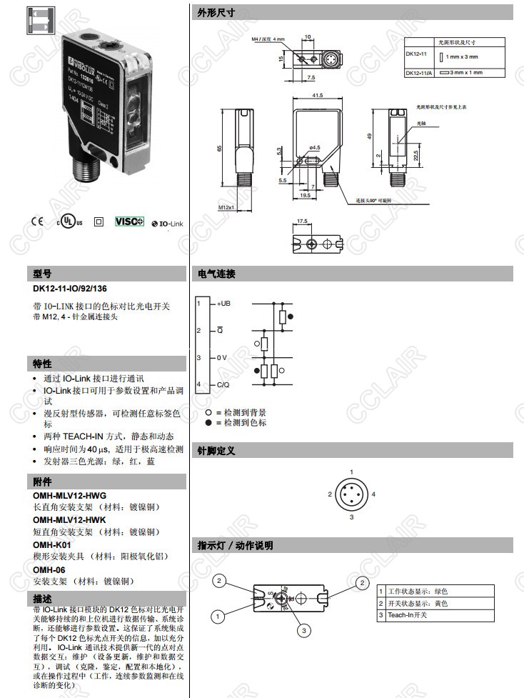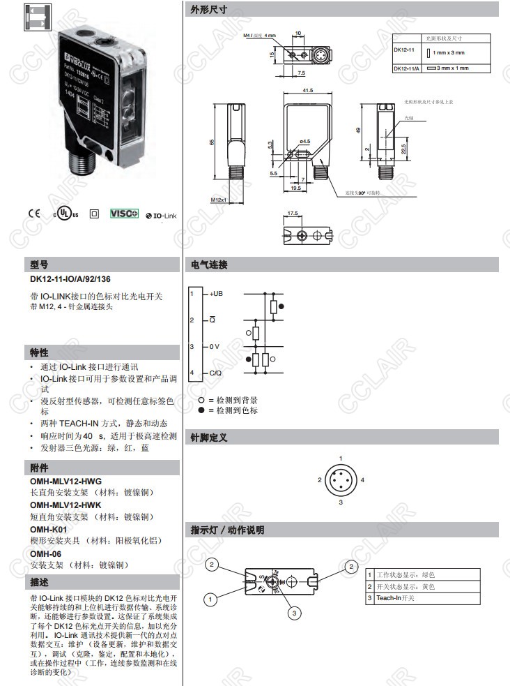 詳細(xì)信息 DK12-11-IO/92/136,DK12-11-IO/A/92/136,色標(biāo)傳感器