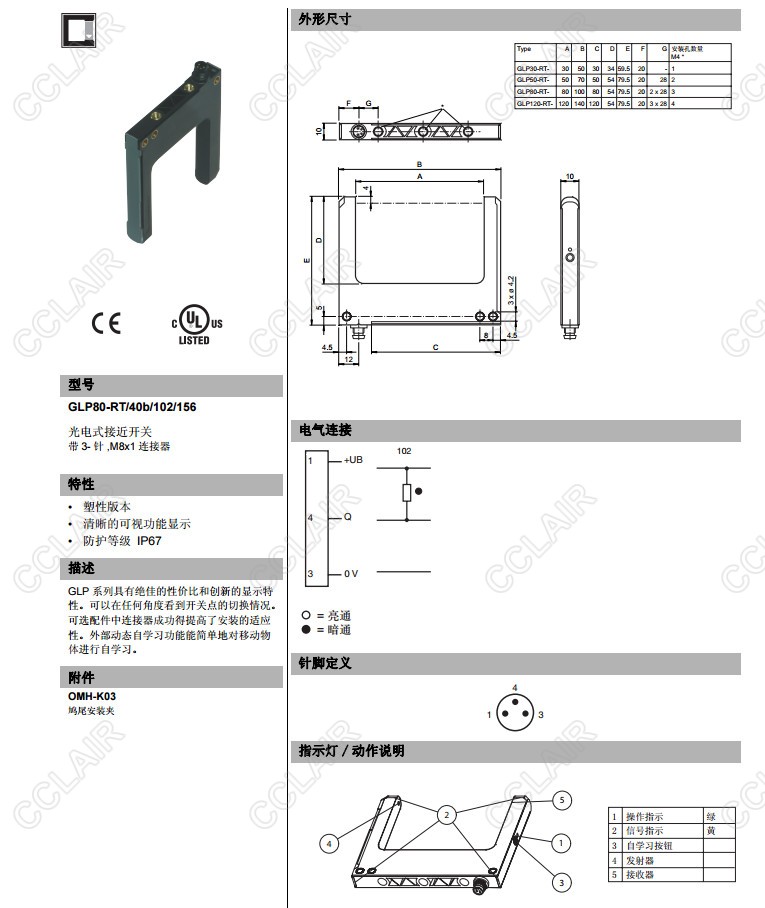 詳細信息 GLP80-RT/40b/102/156,GLP80-RT/40b/103/123/143,槽型光柵傳感器