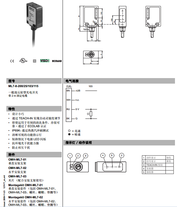 ML7-8-200/25/103/115,漫反射型傳感器