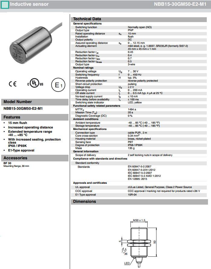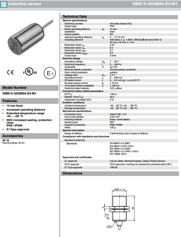 型號: NBB15-30GM50-E2-M1,NBB15-30GM50-E3-M1