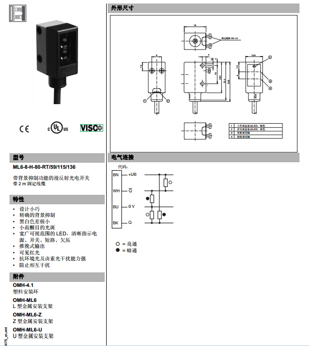 產(chǎn)品: 瀏覽次數(shù):630ML6-8-H-80-RT/59/115/136,漫反射型傳感器