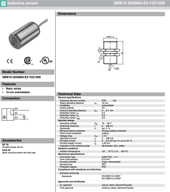 詳細(xì)信息 NBB10-30GM50-E2-Y221409感應(yīng)式傳感器