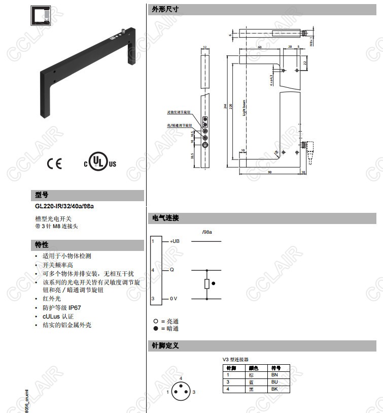 詳細(xì)信息 GL220-IR/32/40a/98a,GL220-RT/32/40a/98a,槽型光柵傳感器