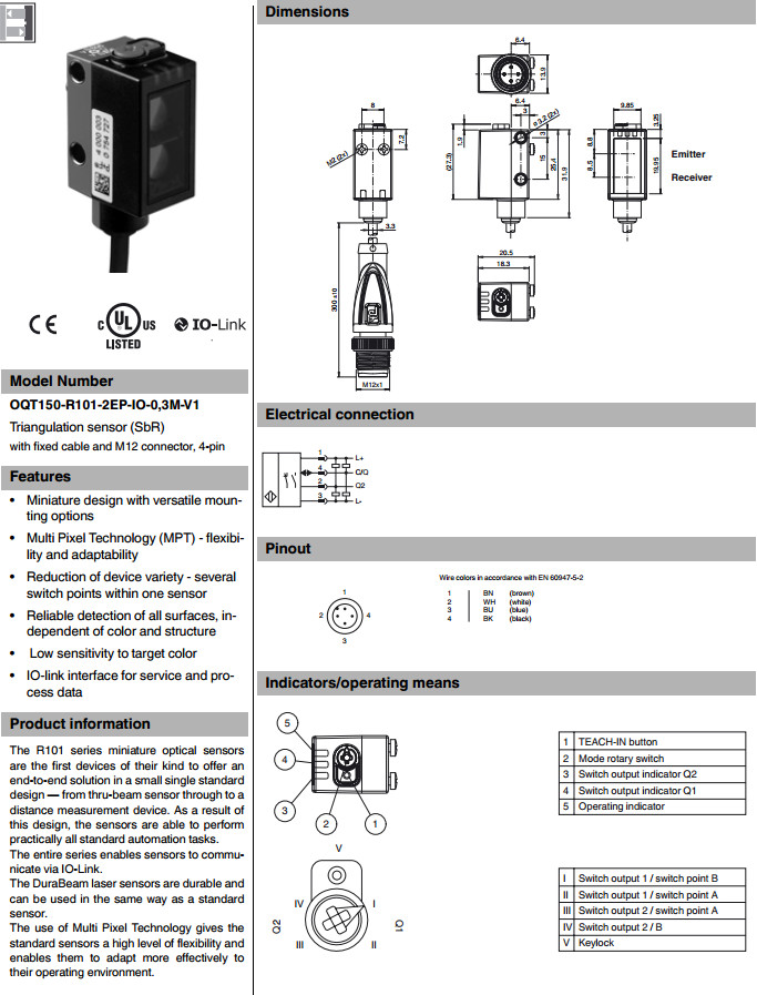 您當(dāng)前的位置:首頁 » 供應(yīng)產(chǎn)品 » OQT150-R101-2EP-IO-0,3M-V1,開關(guān)傳感器