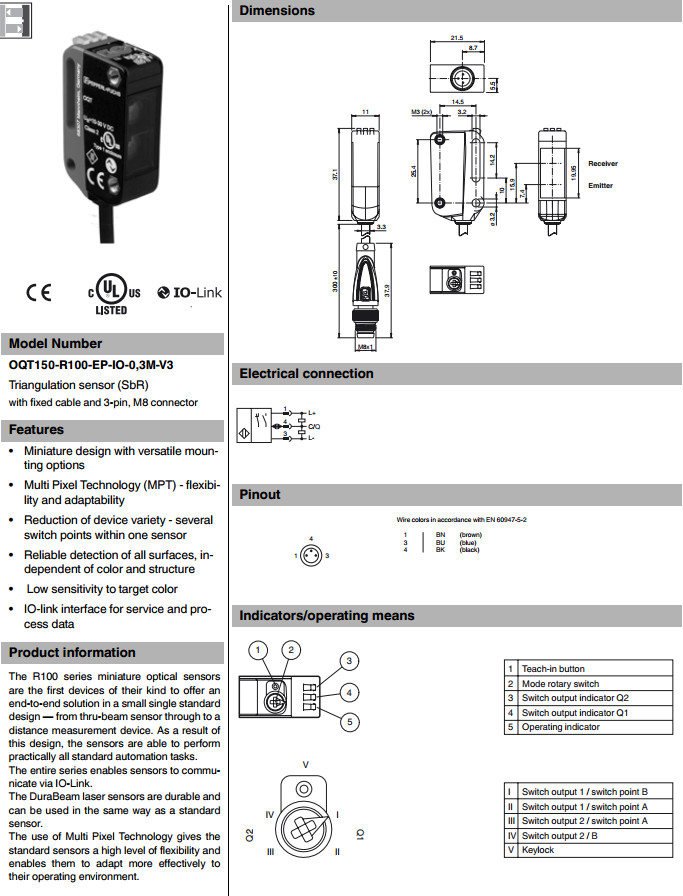 您當(dāng)前的位置:首頁(yè) » 供應(yīng)產(chǎn)品 » OQT150-R100-EP-IO-0,3M-V3,開(kāi)關(guān)傳感器