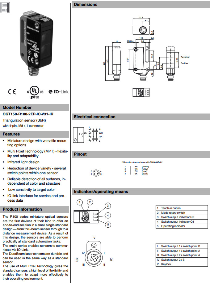 詳細信息 OQT150-R100-2EP-IO-V31-IR,開關(guān)傳感器
