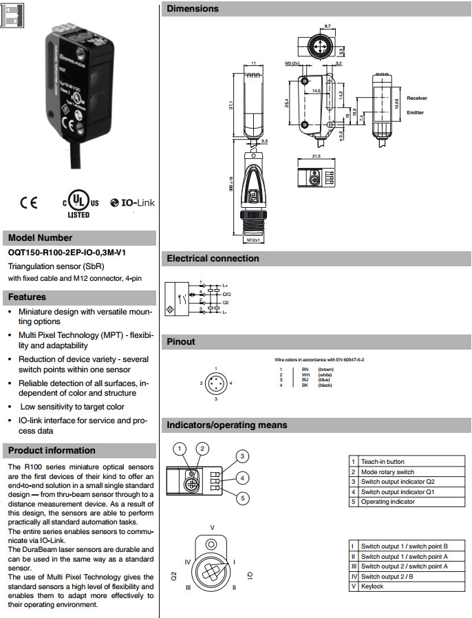 OQT150-R100-2EP-IO-0,3M-V1,開關(guān)傳感器
