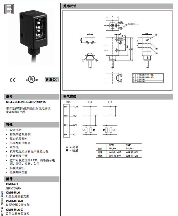 產(chǎn)品: 瀏覽次數(shù):2109ML4.2-8-H-20-IR/40b/110/115,漫反射型傳感器