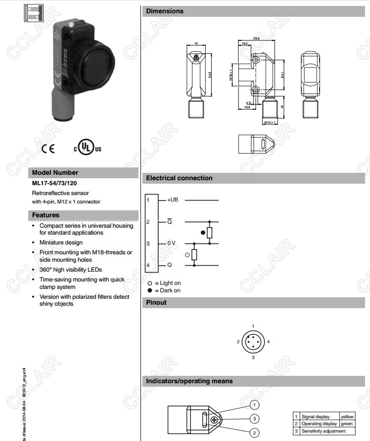 產(chǎn)品: 瀏覽次數(shù):1432ML17-54/73/120,ML17-54/73/136,反射板型傳感器