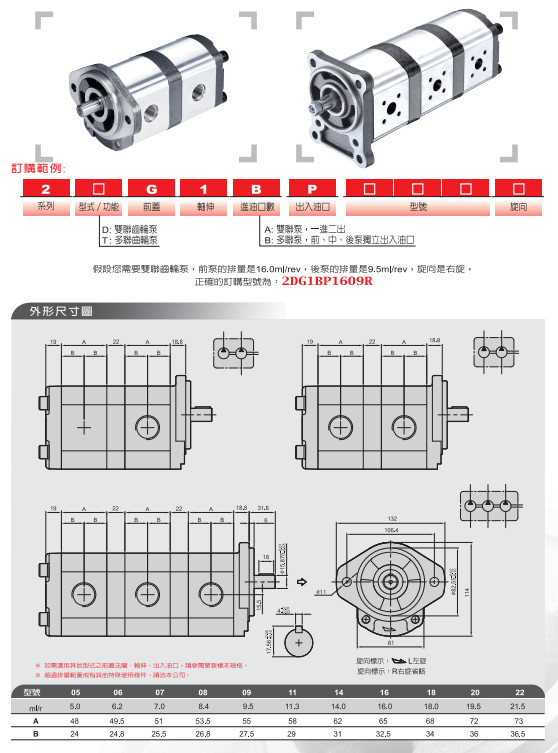 2DG1AP,2DG1BP,2TG1AP,2TG1BP,2DG1BP1609R,HONOR多聊齒輪泵
